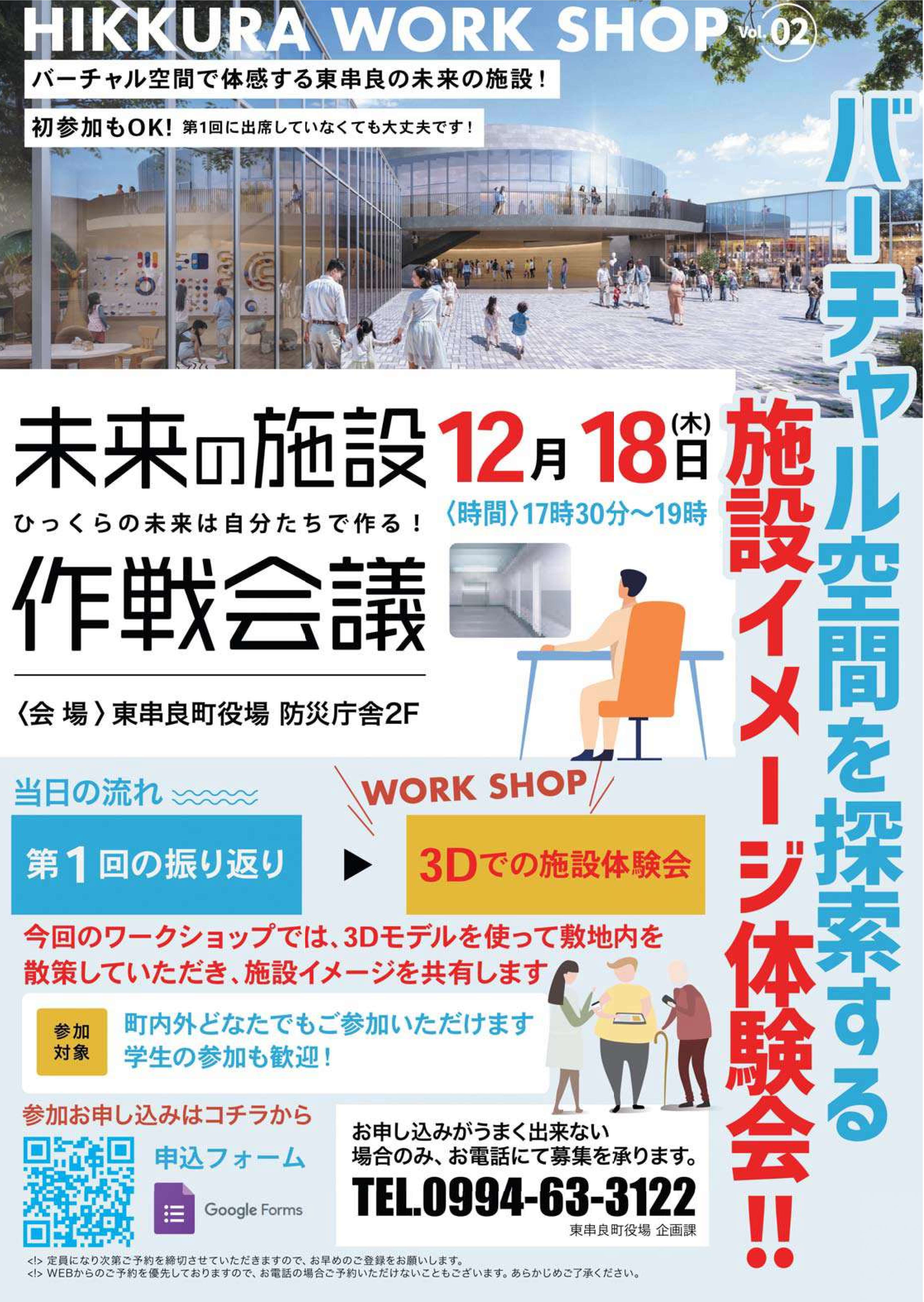 令和7年3月に策定した「東串良町複合施設基本構想・基本計画」に基づいて進めている基本設計等業務において、施設の具体的な間取りや使い方など、住民等の意見を募り、より良い施設の完成と運営を目指していくことを目的に開催します。 |