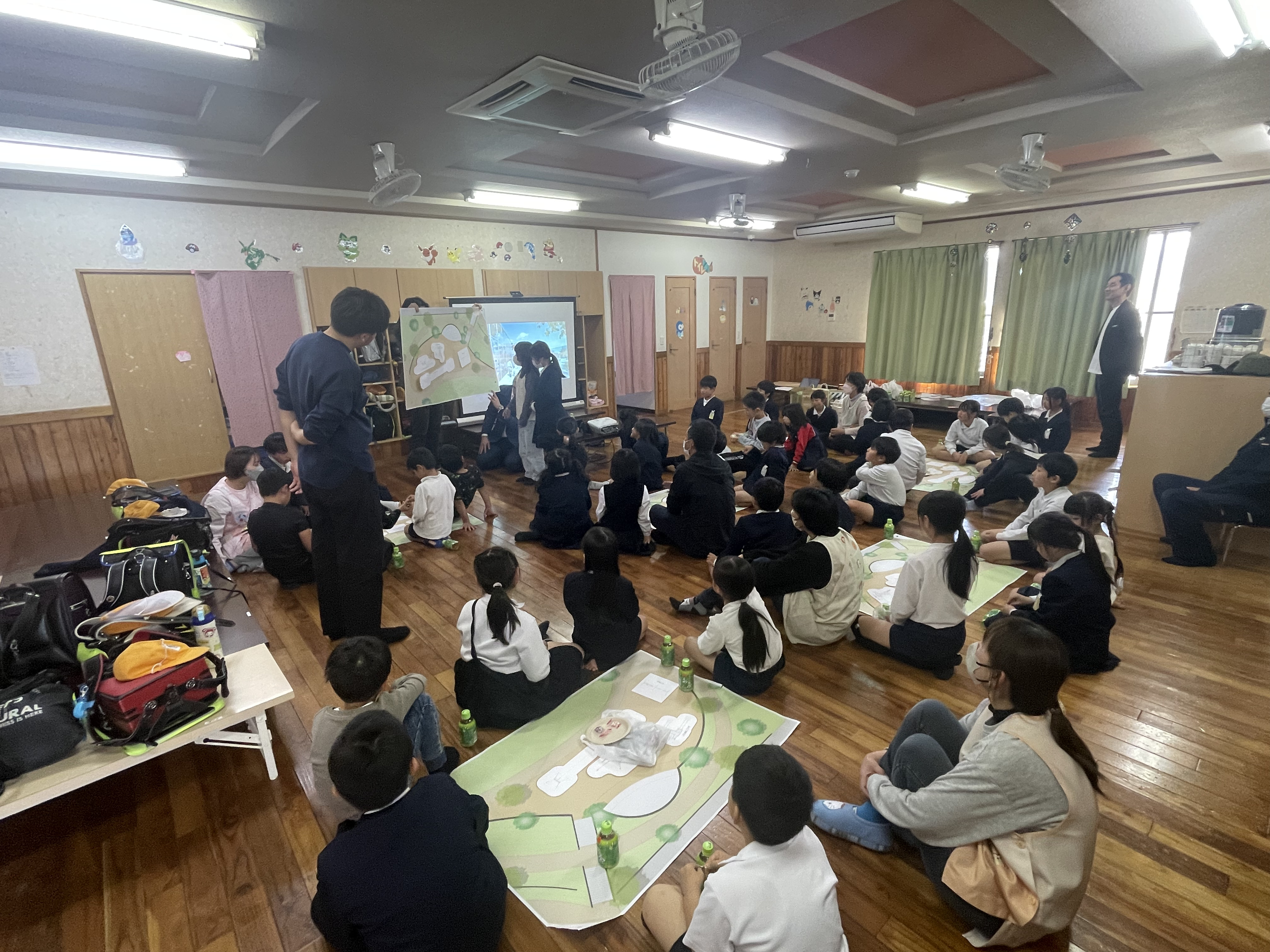 今回のテーマは複合施設敷地内における「屋外遊具」についてで、ワークショップ開催に先立ち、町内の保育園、幼稚園、小学校の子どもたちに協力をいただき、設置してほしい遊具の人気投票を実施しました。当日は、その人気投票の結果発表からスタートし、続いて行われたグループワークでは「遊具の設置や遊び方」について遊具エリアの図面等を用いながら、子どもたち同士で自由に意見を出し合ってもらいました。最後には、グループごとに話し合った内容を発表して全体で意見を共有し、会場は終始にぎやかで、活気にあふれていました。 今回のワークショップや事前の人気投票は、町内の子どもたちに複合施設整備事業を知ってもらい、身近に感じてもらうことを第一の目的として実施しました。いただいた意見は今後の遊具選定や配置計画の参考とし、子どもたちが期待する、楽しめる遊具施設を目指していきます。